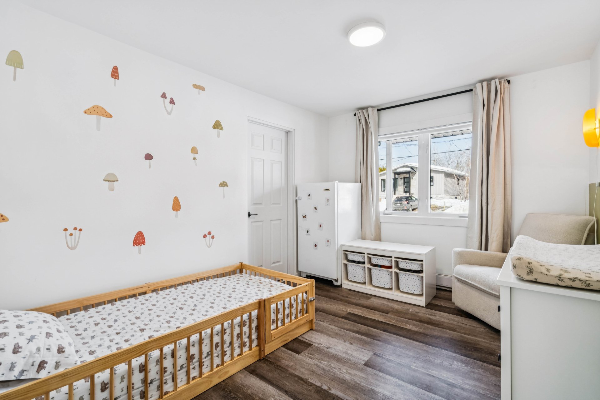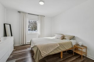 Chambre : Espace lumineux de belles dimensions. Le plancher apporte une ambiance chaleureuse et conviviale à la pièce. Le garde-robe ajoute un bel espace de rangement.